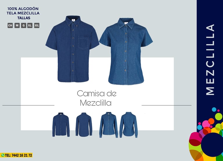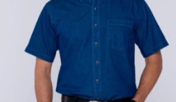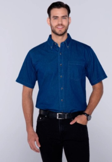 Camisa de Mezclilla Manga Corta para Caballero · 100% Algodón · Color Índigo Claro
