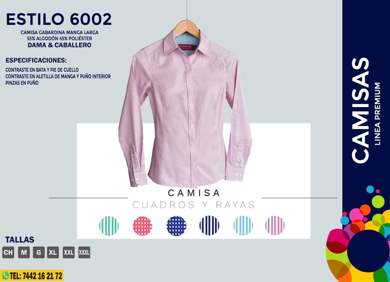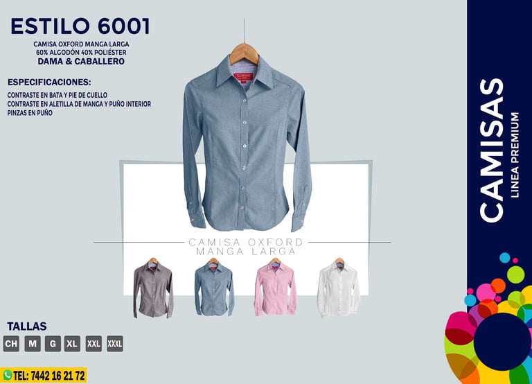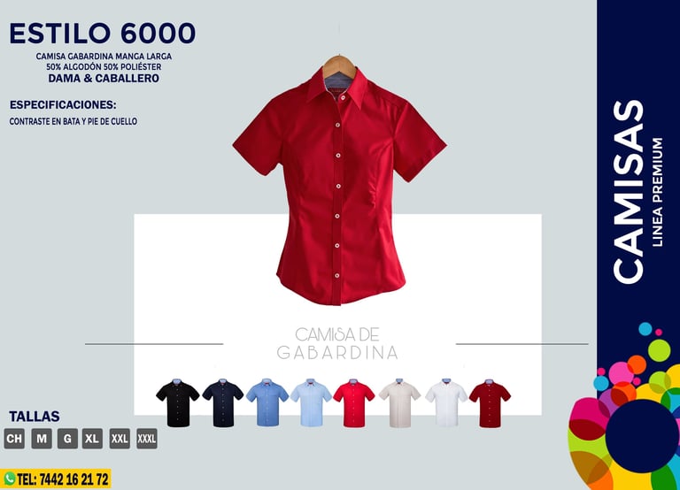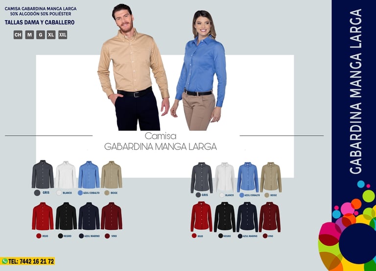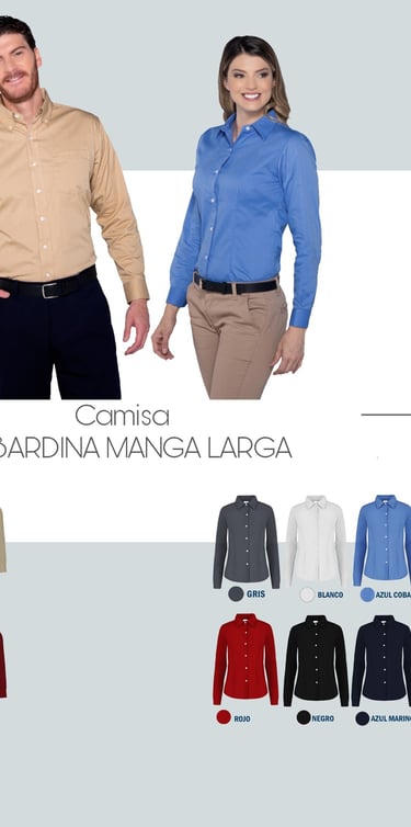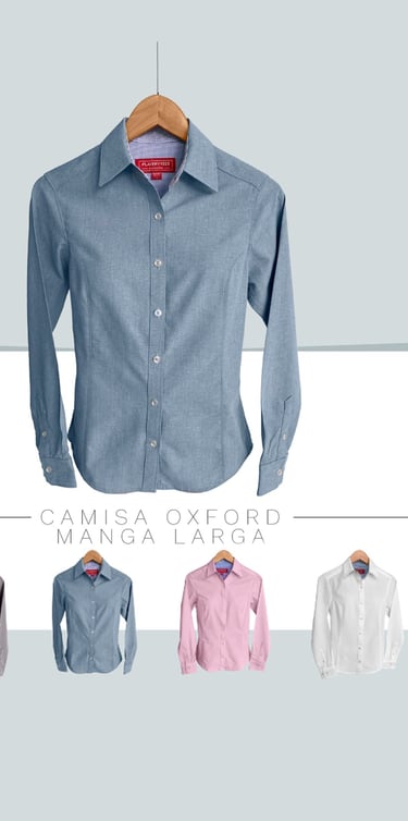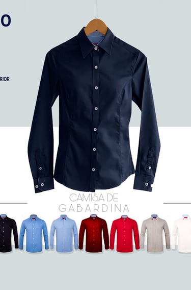 Camisa de Gabardina Manga Larga con Silueta para Dama · 50% Algodón 50% Poliéster