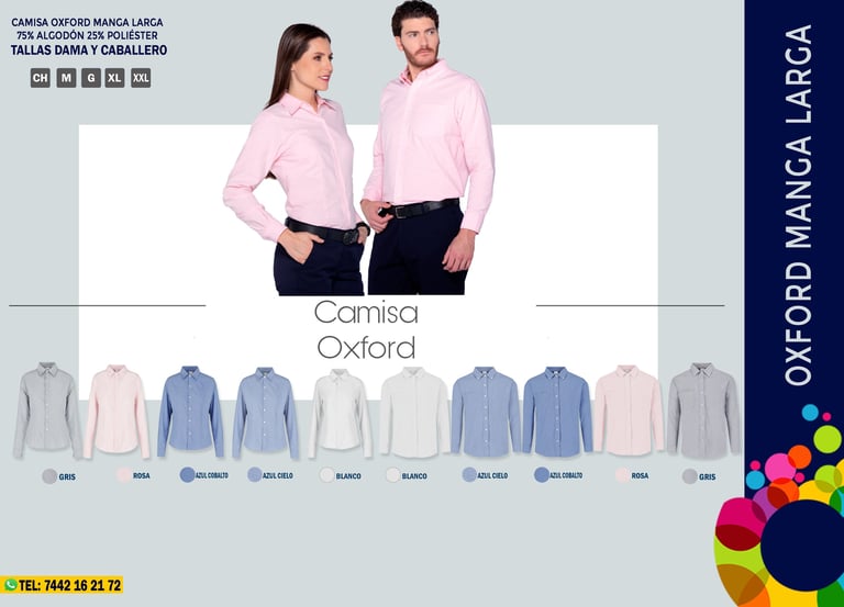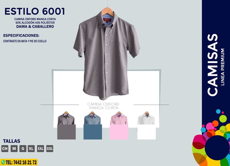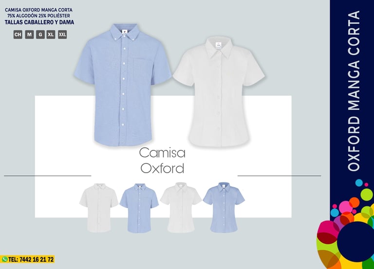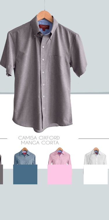 Camisa Oxford Manga Corta para Caballero · 75% Algodón 25% Poliéster