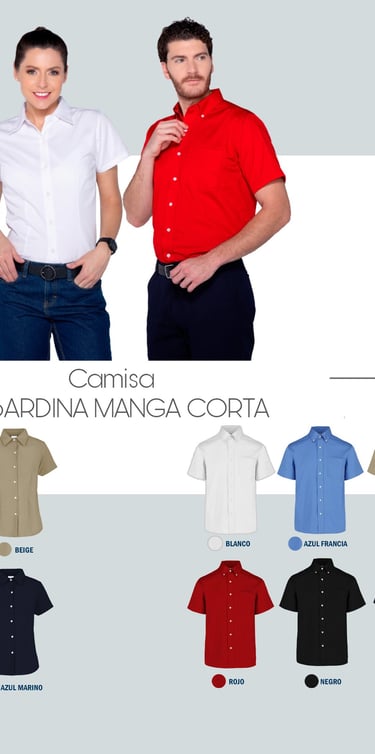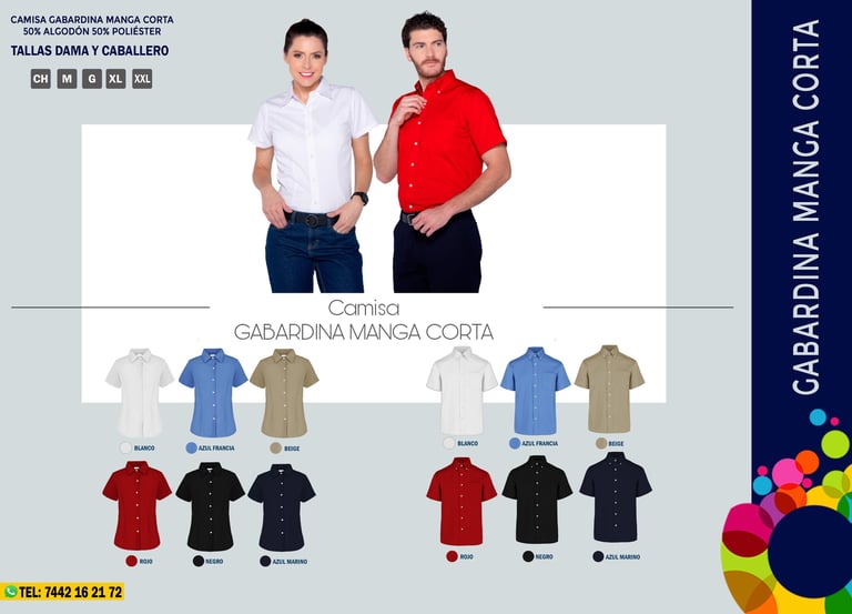 Camisa de Gabardina Manga Corta para Caballero · 50% Algodón 50% Poliéster