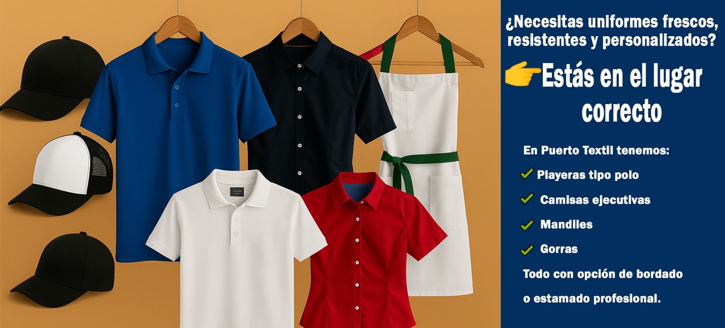 En Puerto Textil ofrecemos ropa de trabajo, playeras estampadas y bordados. Atendemos a negocios, escuelas y más, brindando soluciones personalizadas y cómodas para uniformes, tanto al por mayor como al por menor.